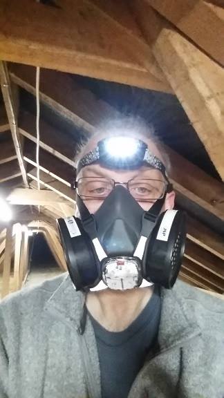 This is the last of the emergency lights. Right up in the eaves! It gets a bit dusty. I've found out why there hasn't been any new star wars films for a while. I found Darth Vader in the loft!