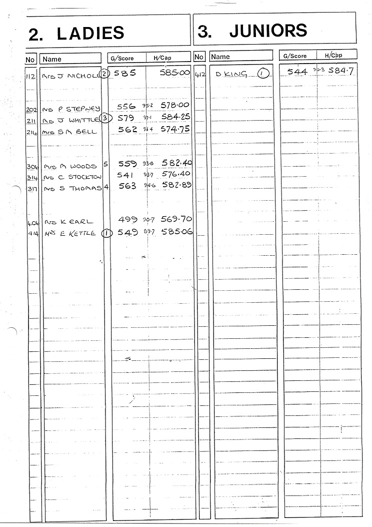 | 3. Juniors (handicap) | D | King | Cuckfield | 584.70 | ||