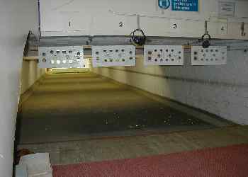 Indoor .22 smallbore rifle 25yds range consisting of 8 firing points.