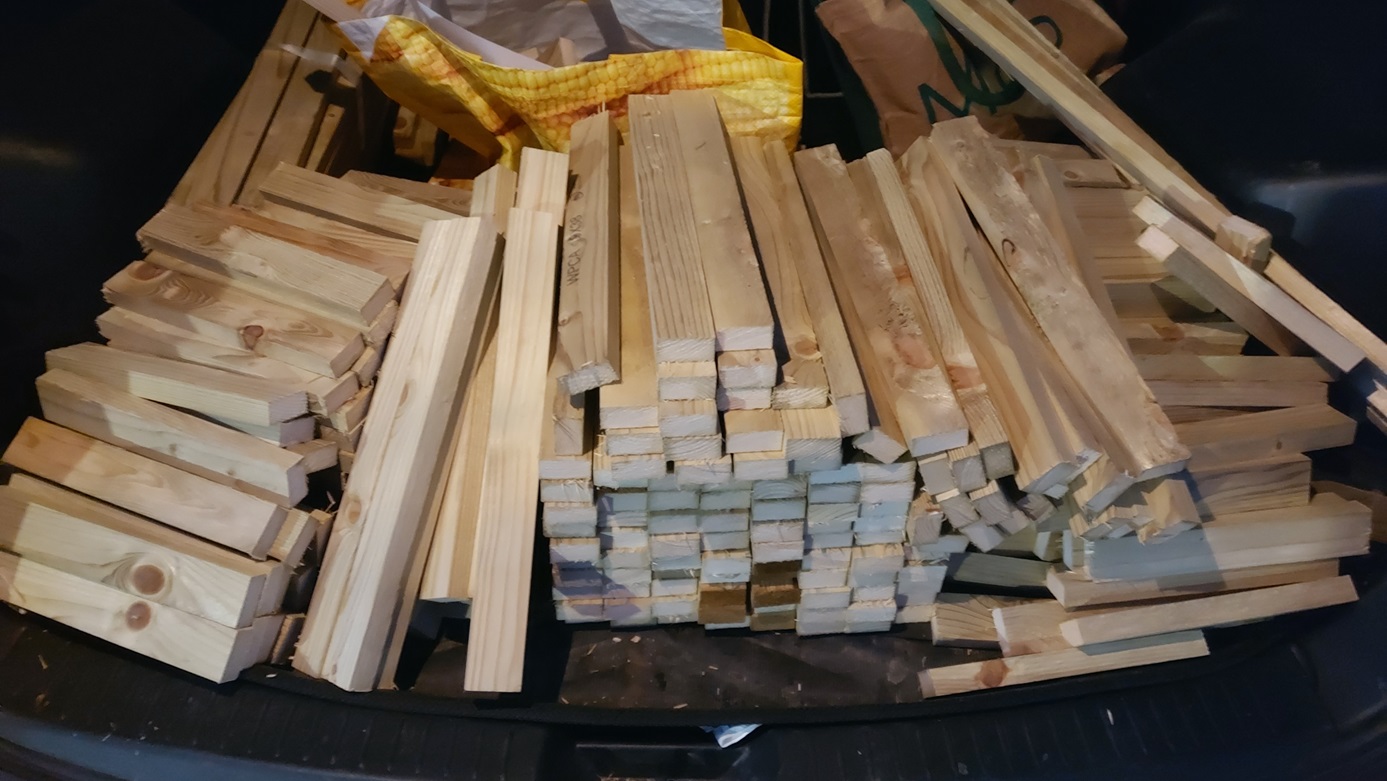 We also required 31 battens cut into 401 peices ready for the box construction. Many thanks to Mid-Sussex Timber Co Ltd for a good price and especially to Nadia for cutting them up for us.