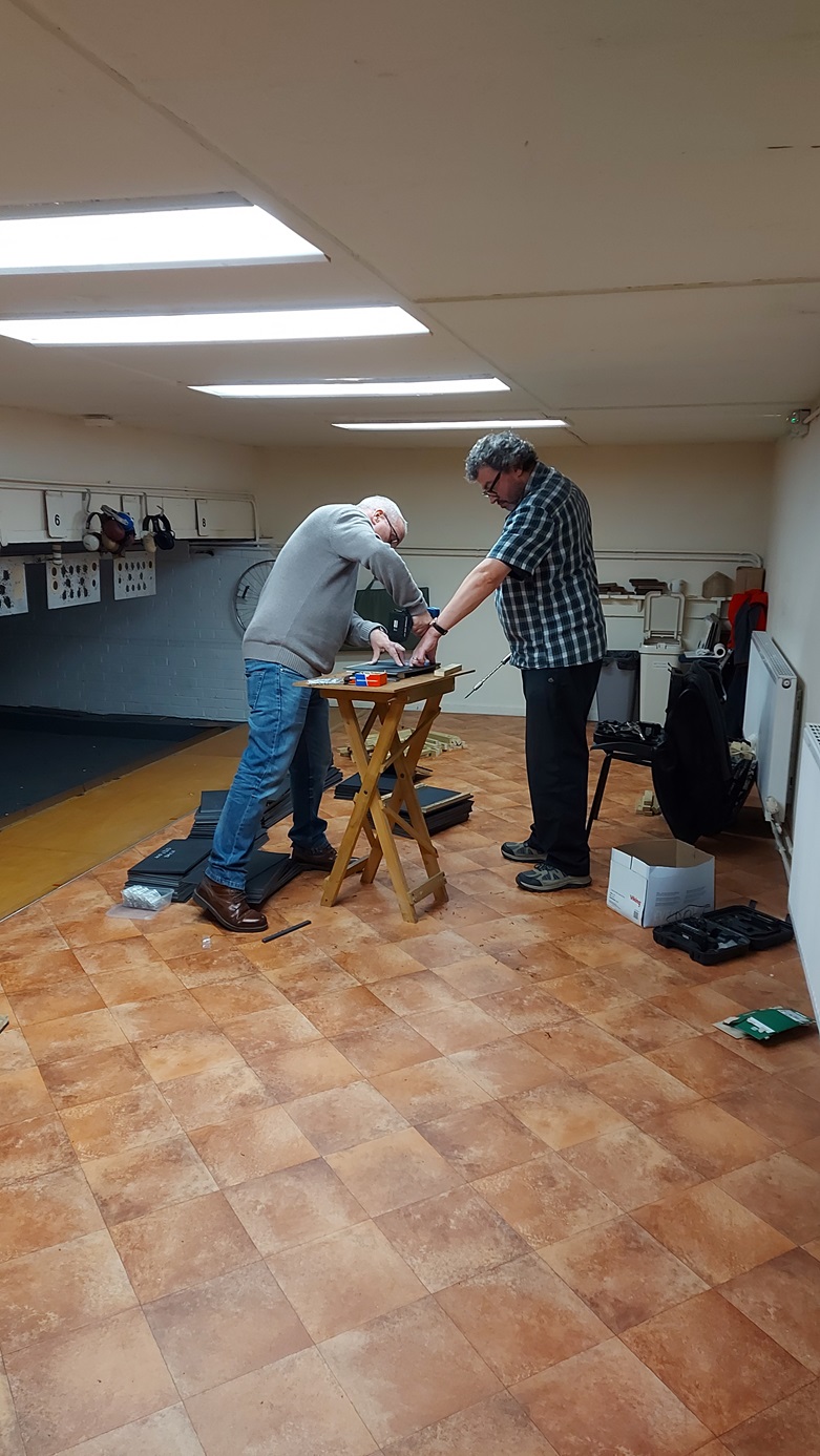 Prior to the work party some preparation works and prototyping of the new target frames and boxes was undertaken by John Tadman and Mike Kettle. Also, many thanks to Richard and his colleague at Southern Sheeting for guillotining ten 8' x4' sheets of 9mm Stokbord into the much smaller sizes (288 of them) we need for the new bullet catchers.