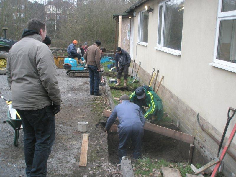 We have placed an order for a ramp to assist wheelchair and trolley access and this work should be commencing soon. The majority of the funding for the ramp is being provided by Mid-Sussex District Council. Saturday, 29 January 2011 saw preparatory works for the ramp taking place in the form of three concrete pad foundations being installed. The works went well with assistance from a mini digger that did all the hard work.