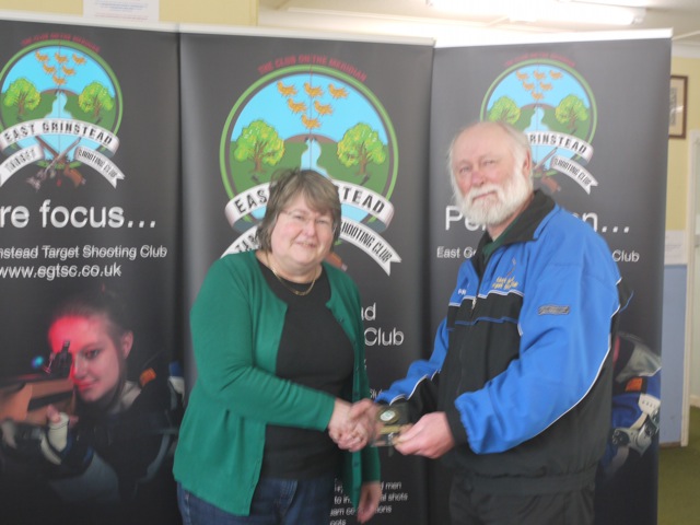 Elaine Kettle receives the Class D Open Dewar Award (50m and 100 yards)