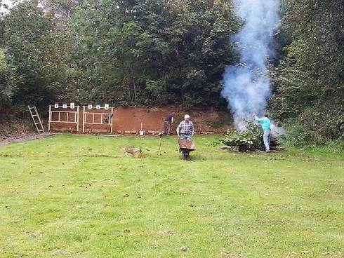 Secondly, many thanks to all the volunteers that rolled up armed to the teeth with garden implements. We managed to clear both sides of the range and tidy up the butts. This included removal of some substantial pieces of timber. Everything apart from a metal bird feeder disappeared on the bonfire.