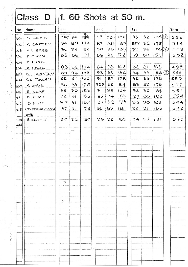 | 1. Aggregate Class A (Silver Cup) | 3rd | N A | Davis | Wimbledon Park | 591 | c/b |