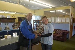(Lewis Strotten is presented with the Class C Shield by Club Vice President David Britchford)