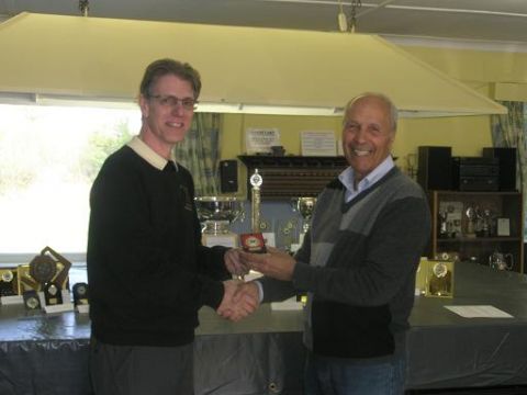 (Photo: Vice President David Britchford presents Jim Howard with his medal for the pairs competition)